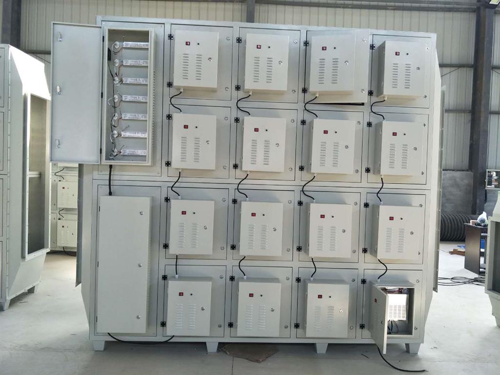 通過風(fēng)機將廢氣吸入工業(yè)除塵設(shè)備中,由于機器的碰撞,中間部分的大油滴截留在均流板上。當氣流進入高壓靜電場時,在高壓電場的影響下,將廢氣電離,對油霧進行充電,將大部分降解和碳化,在空氣流動的影響下,在吸附電場的電場力和電場的正及板和負及板的影響下,在及板上收集小部分細的油顆粒,電場中的氣氛為在高壓發(fā)生器的影響下產(chǎn)生的臭氧,去除大部分煙氣中的空氣。