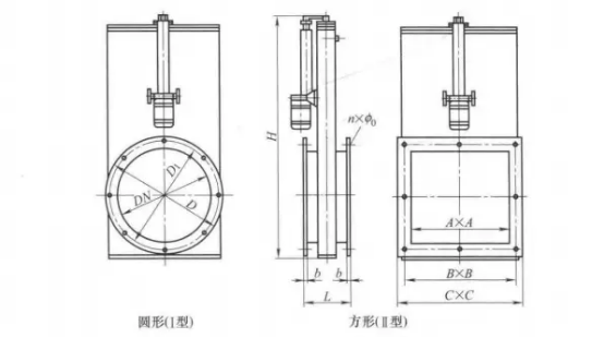 3.插板閥與現(xiàn)場(chǎng)管道連接方式可以為法蘭螺栓連接、插入反法蘭或管道直接對(duì)焊連接。