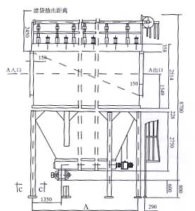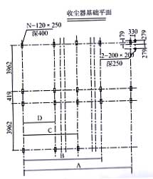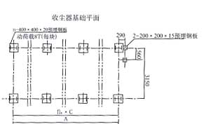 3、設(shè)備外形及基礎(chǔ)(見附圖),我公司還可根據(jù)用戶場地情況設(shè)計(jì)符合用戶要求外形的除塵器。